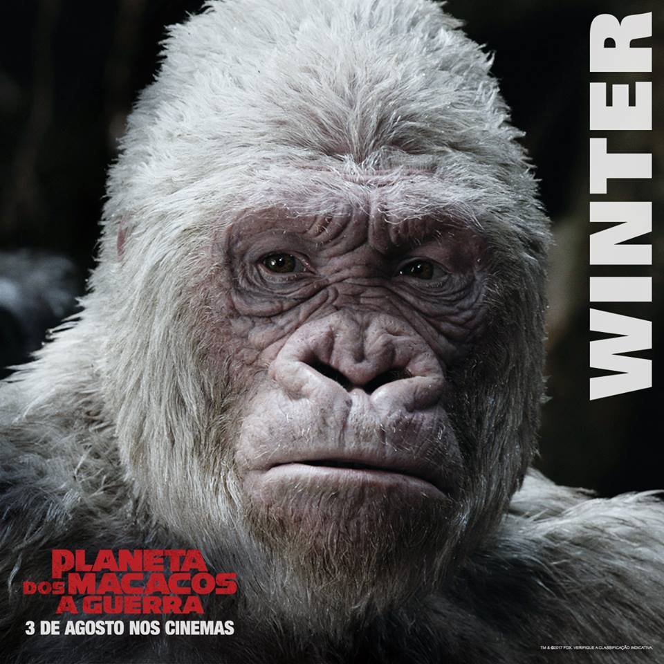 Já que citamos a via crucis de César, se analisarmos bem, ela vem desde o primeiro longa; e em Planeta dos Macacos: A Guerra ela é de longe a parte mais dolorosa. Consequentemente nosso querido protagonista evoluiu ainda mais com o passar dos anos; percebemos isso em sua pronúncia mais humanizada, em sua forma de caminhar – mais ereto e com ombros firmes, com postura de quem carrega a responsabilidade de uma sociedade inteira – e principalmente em sua forma de pensar. Além de fantasmas do passado que o assombram por ainda não ter atingido seu propósito: dar uma vida de paz e segurança para sua espécie.