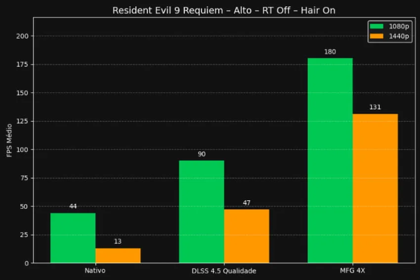 Eu zerei esse jogo com essa última configuração: 1440p, Alto, Hair On, DLSS 4.5 Qualidade e MFG4X. Sinceramente, não tive problemas com o jogo engasgando, crashando, etc. Ficou realmente muito bonito o tempo todo.